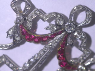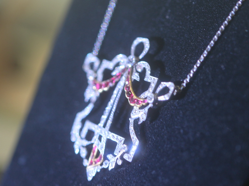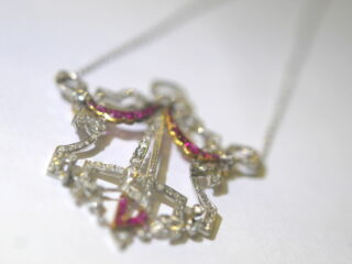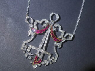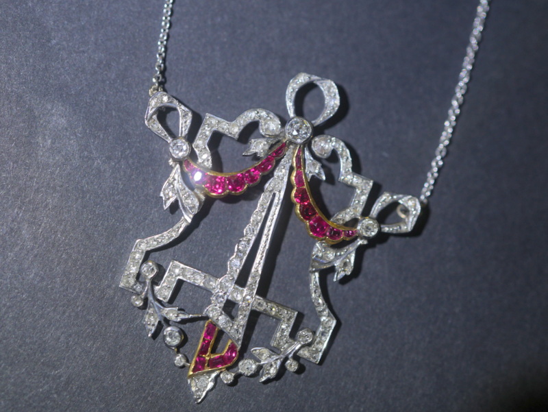 アールデコネックレス|約1ctオールドヨーロピアン&ローズカットダイヤ+約0.5ctルビー (鑑定書付)【商品番号4316a】