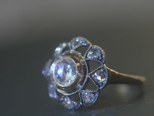 アールデコ指輪|約1.2ctダッチローズカットダイヤ(鑑定書付)【商品番号4649】