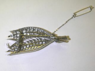 ホーム / ダイヤモンド / オールドヨーロピアンカット / アールデコ麦の穂ブローチ|オールドヨーロピアンカットダイヤ (鑑定書付)【商品番号4618】 セール アールデコ麦の穂ブローチ|オールドヨーロピアンカットダイヤ (鑑定書付)【商品番号4618】 ¥936,000 元の価格は ¥936,000 でした。¥916,000現在の価格は ¥916,000 です。 (税込) アールデコ麦の穂ブローチ|オールドヨーロピアンカットダイヤ (鑑定書付)【商品番号4618】 個 お買い物カゴに追加 カテゴリー: アールデコ, オールドヨーロピアンカット, ダイヤモンド, ハイジュエリー, ブローチ 説明 説明 アンティークジュエリーの情報 原産国 ヨーロッパ 製作年代 1930年代頃 素材 オールドヨーロピアンカットダイヤモンド,プラチナ サイズ 31(縦)x72(横)ミリ アンティークジュエリーの説明文 麦の穂のティアラは,ナポレオンの妹,プリンセス・ポリーヌ・ボルゲーゼが, 1804年のフランス皇帝としての,ナポレオンの載冠式に着用し,それ以来, フランスだけでなくヨーロッパ全土に広がりました。 製作年代 1837年ビクトリアン女王の載冠式において,12人の若い貴族女性の裳裾持ちたち全員が, 同じような麦の穂のティアラを着けたと言われています。 関連商品 アールヌーボーゆりとカーネーションのブローチ|オールドヨーロピアンカットダイヤ&パール 【商品番号1008a】 ¥250,000 (税込) お買い物カゴに追加 930c アンティークジュエリー ビクトリアン シェル カメオブローチ ¥87,000 (税込) お買い物カゴに追加 ビクトリアン ネックレス&ブローチ|ローズカットダイヤ&エナメル 【商品番号4706】 ¥1,070,000 (税込) お買い物カゴに追加 ビクトリアン水カメを持つ女神シェルカメオ 【商品番号0683a】 ¥75,000 (税込) 続きを読む