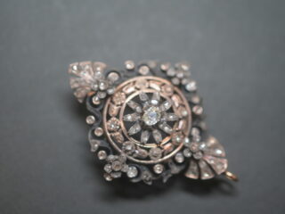 この時代はダイヤの周りが,シルバーを使うのが一般的なのに,ローズゴールドを使ったとても贅沢なブローチです。