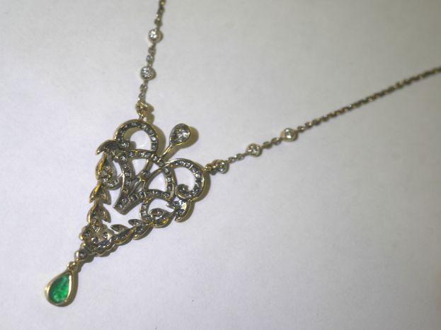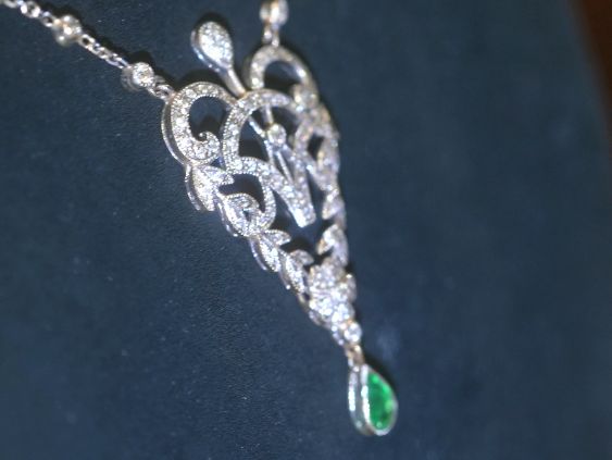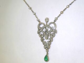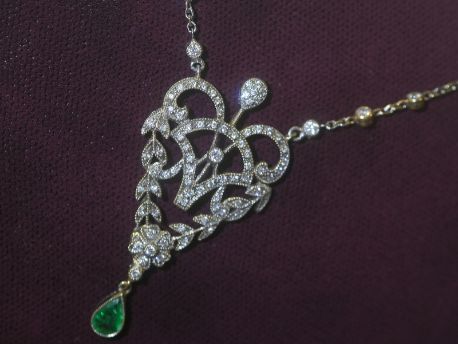 アールデコネックレス|約1.25ctダイヤ&約0.45ctエメラルド (鑑定書付)【商品番号4657】
