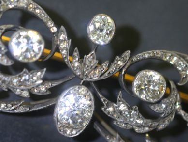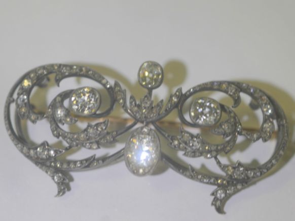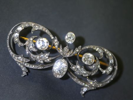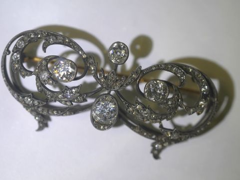 ビクトリアンブローチ|約4ctオールドマインカット&ローズカットダイヤ(鑑定書付)【商品番号4694】