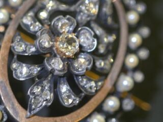 ビクトリアンブローチ&ペンダント|2種のダイヤ&天然真珠 (鑑定書付)【商品番号4704】