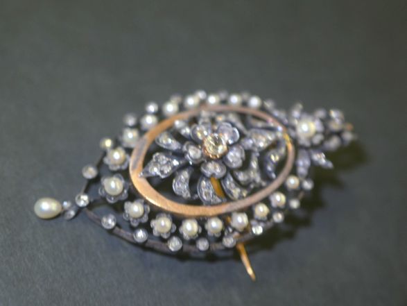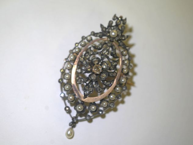 ビクトリアンブローチ&ペンダント|2種のダイヤ&天然真珠 (鑑定書付)【商品番号4704】