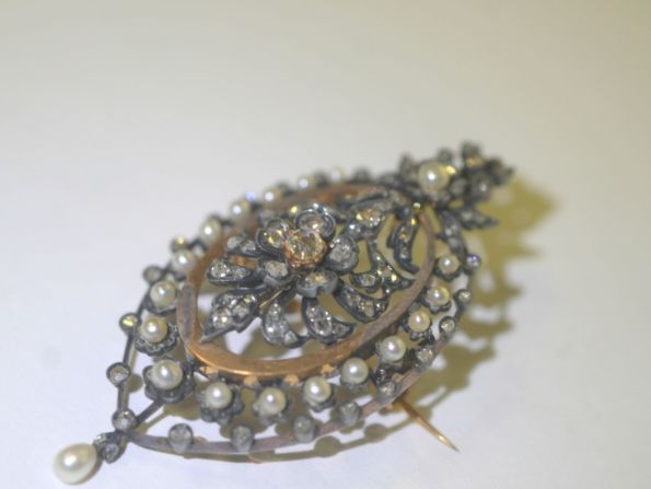 この時代天然の真珠が大変貴重な時代に,これほどの大小の数のブローチは珍しいものです。