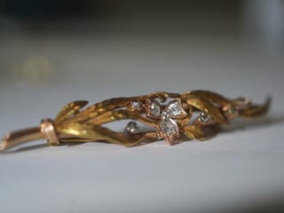 幻想的な植物の造形のアールヌーヴォーのダイヤモンドジュエリー。