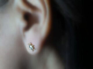 合計2石約0.75カラットもあるダッチローズカットダイヤモンドによる強い輝きです。