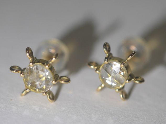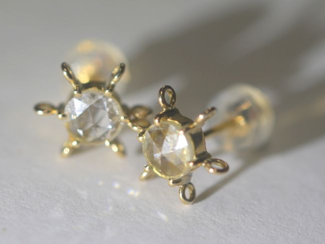 合計2石約0.75カラットもあるダッチローズカットダイヤモンドのピアスです。