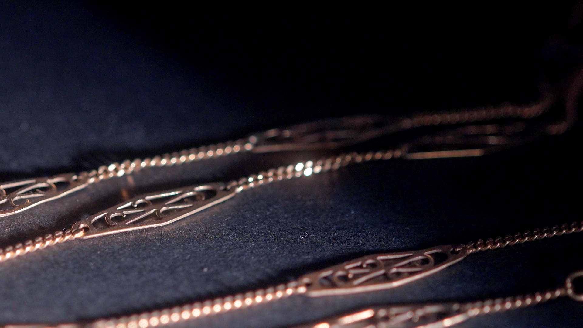 チェーンにリズム感が出て、身につけると凝った感じと立体的な輝きで、フィリグリー細工の透かし文様が輝きます。