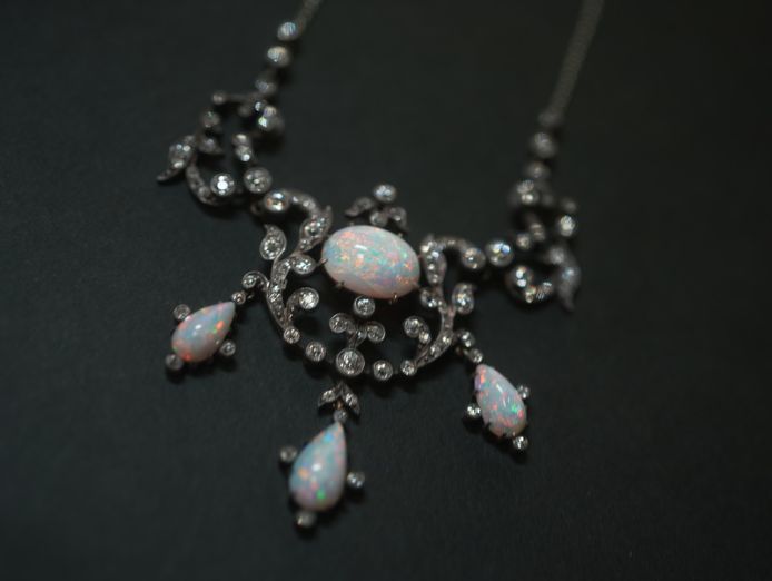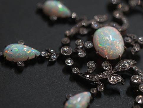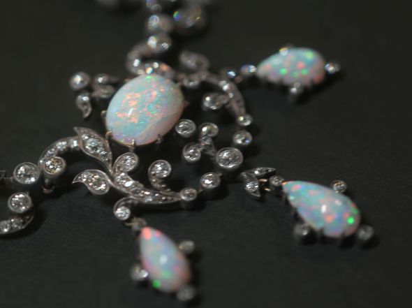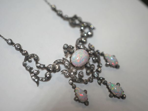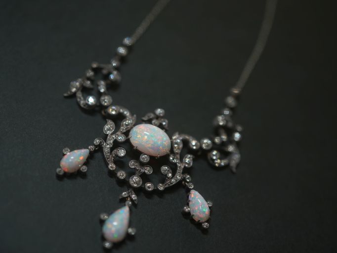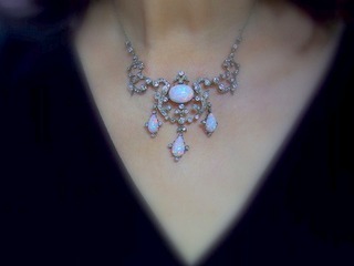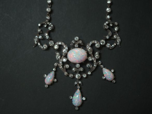 ビクトリアンネックレス|オールドカットダイヤ&オパール(鑑定書付) 【商品番号n67】