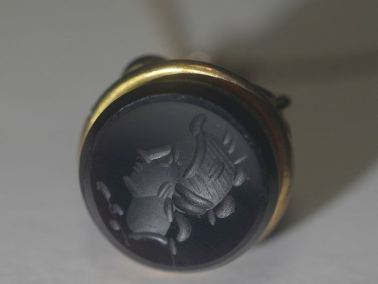 美しい彫金作品で、古いシール(印章)のアンティークジュエリーです。
