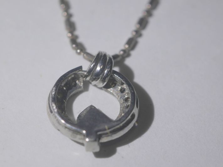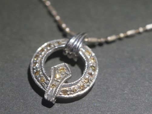 また、小さいながら手に取れば高い質感を感じる合計17石約0.32ctブリリアントカットダイヤモンドのペンダントです。