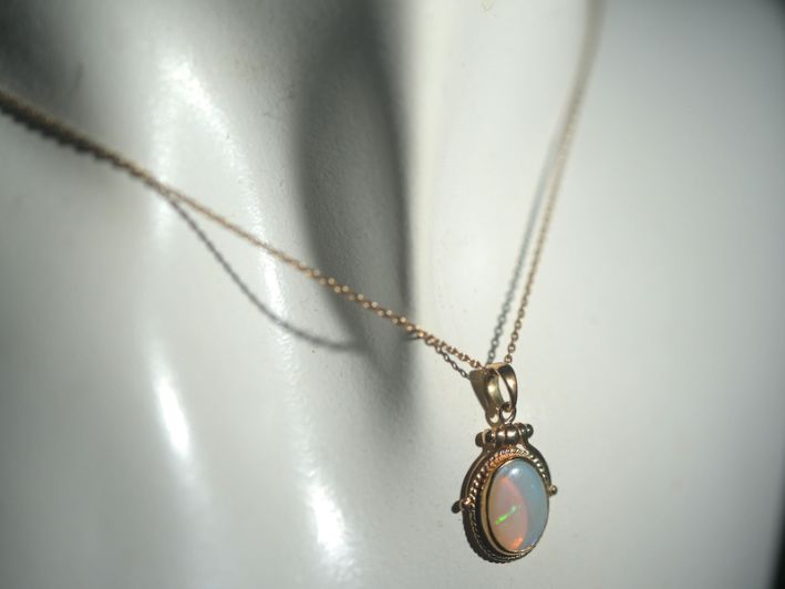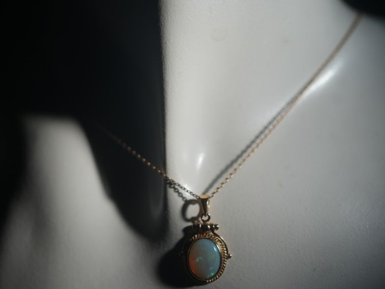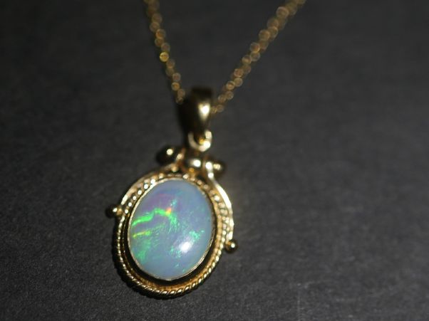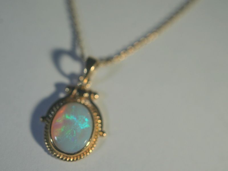 この石が放つ遊色(プレイオブカラー)は、まるで万華鏡を覗き込んだような鮮やかさ。