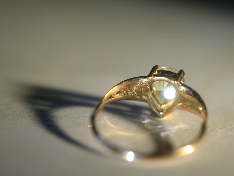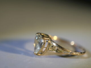 仏刻印アールヌーヴォー約1.1ctティアドロップオールドマインカットダイヤリング(鑑定書付)【r148】