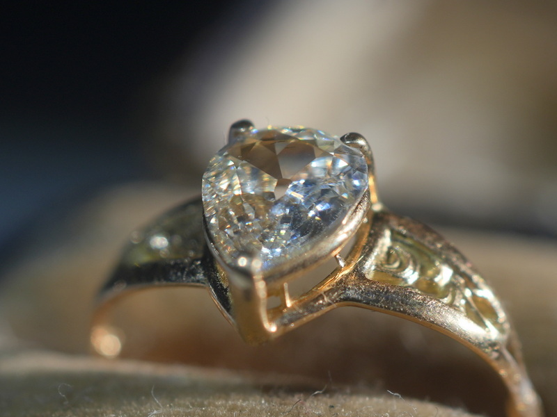 夜のキャンドルの灯りや、夕暮れ時の暖色の光を受けたとき、この石は現代のダイヤでは決して見ることのできない、ドラマチックな表情を見せてくれます。