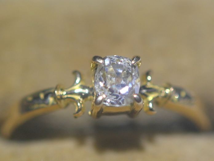 仏刻印アールヌーヴォー約0.45ctオールドマインカットダイヤモンド百合の紋章ソリティアリング(鑑定書付)【ra115】