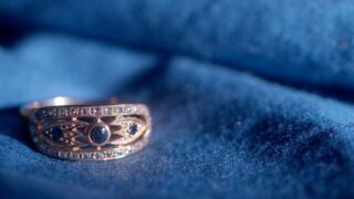 天然のサファイアは、永遠に続く人の理解を超えるブルーで、深い深い美しさ。 サファイアとローズカットダイヤモンドの指輪は、ヨーロッパの文化と歴史を、感じさせられる。