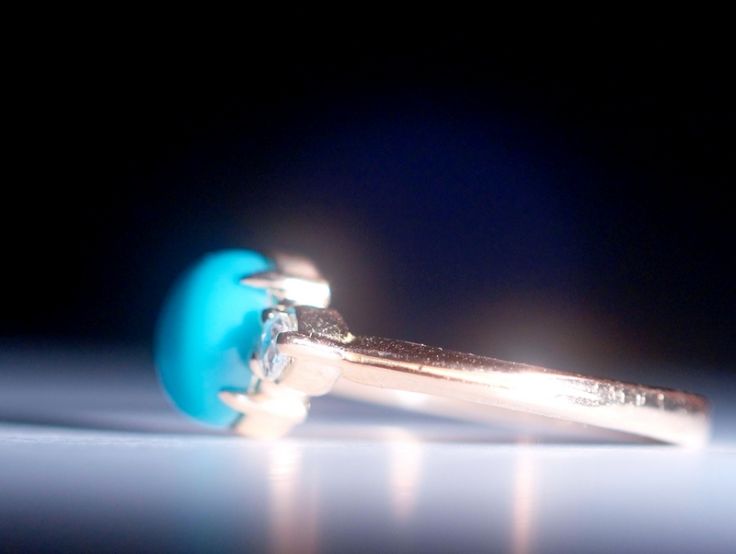 この贅沢なトルコ石は、小さな爪で、丁寧に大事に留められています。