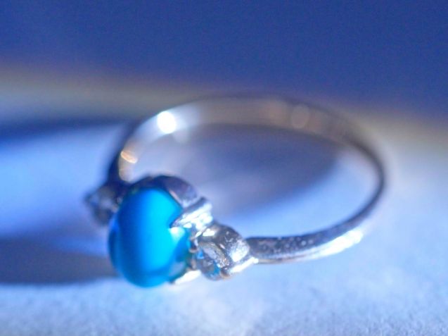 ふっくらと盛り上がったカボションカットのトルコ石。