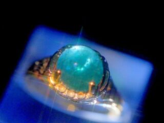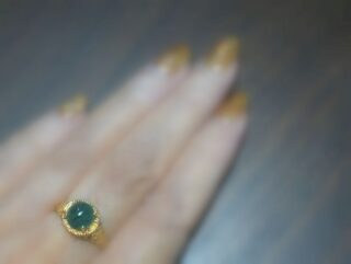 エメラルドグリーンという言葉がピッタリの透明感のあるリング。