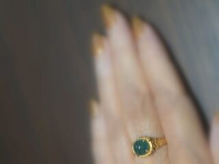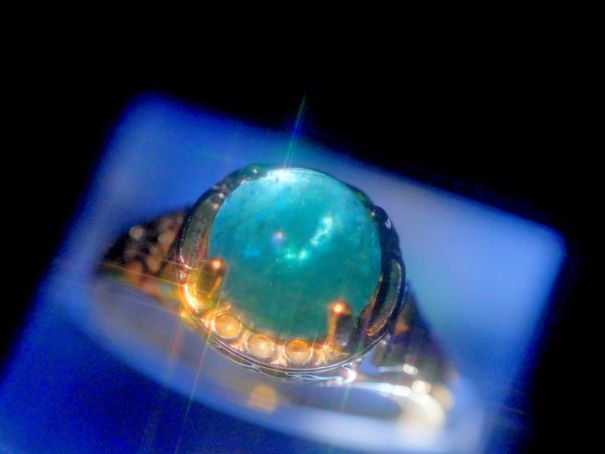 繊細な透かし模様が、光が当たった時、石の底のほうからより明るい緑色が挿しとても綺麗です。