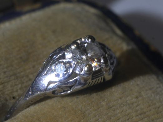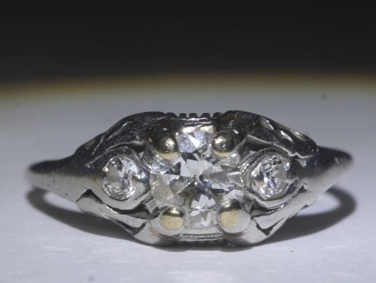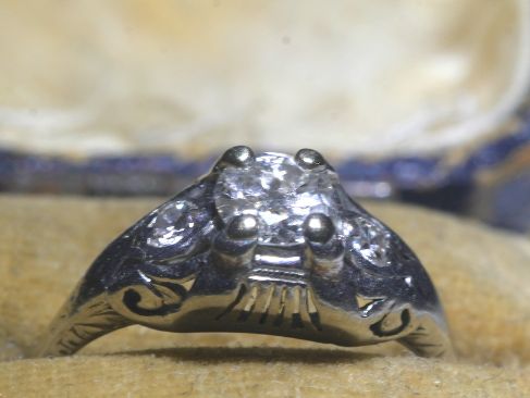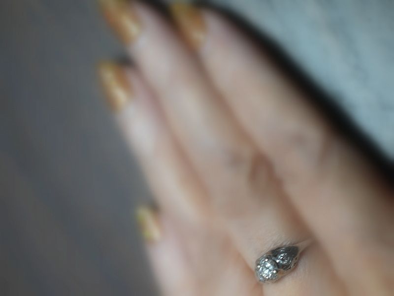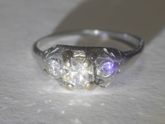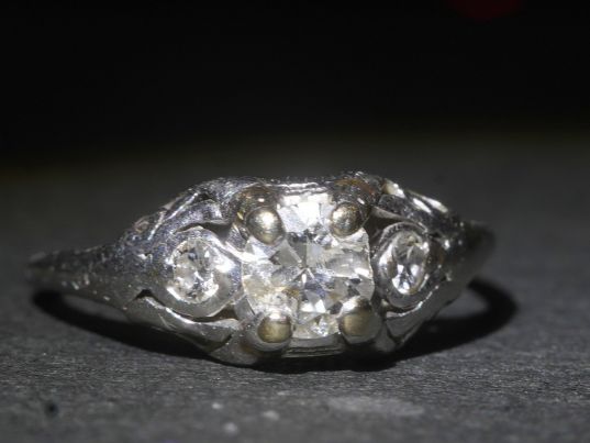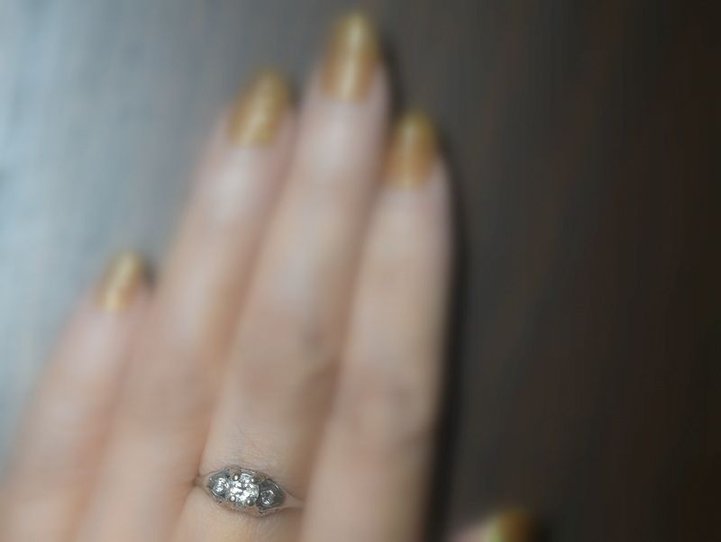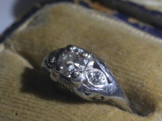 合計3石約0.45カラットのオールドマインカットダイヤと、シングルカットダイヤモンドが使われた指輪です。