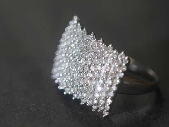 エレガントで、輝くダイヤモンドをちりばめたロマンティックな指輪です。