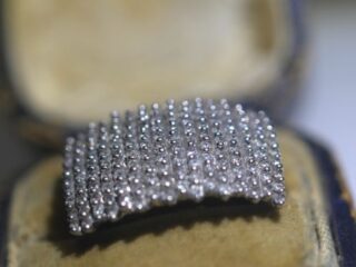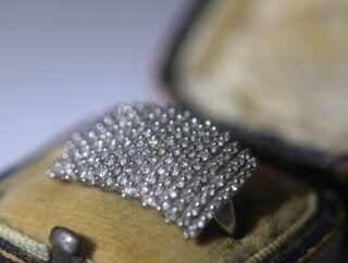 品格と古典的な雰囲気漂う、合計約1.44カラットの144石もあるシングルカットダイヤモンド。