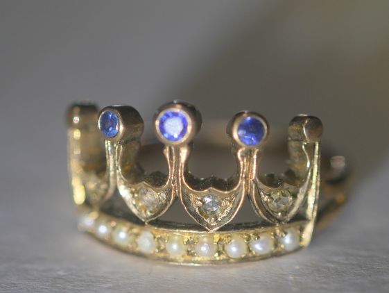 遠くからでも、とても美しく見える個性的な王冠の指輪。