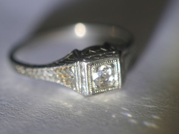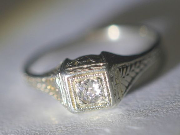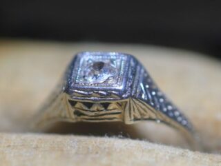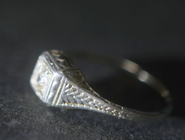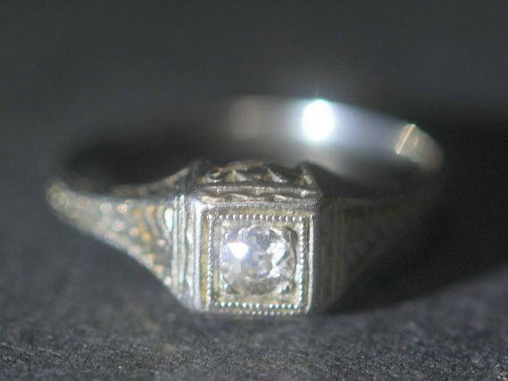 アールデコ18k約0.15ctオールドマインカットダイヤリング【ra146】