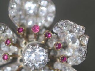 約5カラット109石オールドマインカットダイヤ&11石0.15カラットルビーという永遠の象徴がひとつになったリングは、