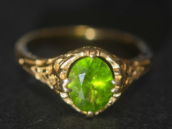 仏刻印アールヌーヴォー約1.5ctデマントイドガーネット(ホーステール)フィリグリーリング(鑑定書付)【ra158】