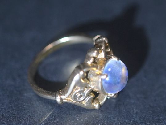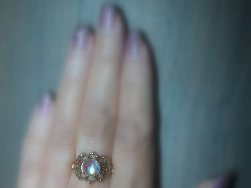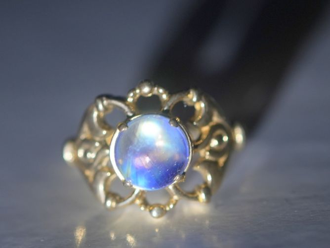 しっかりとした存在感を誇るカボションカットのブルームーンストーン。
