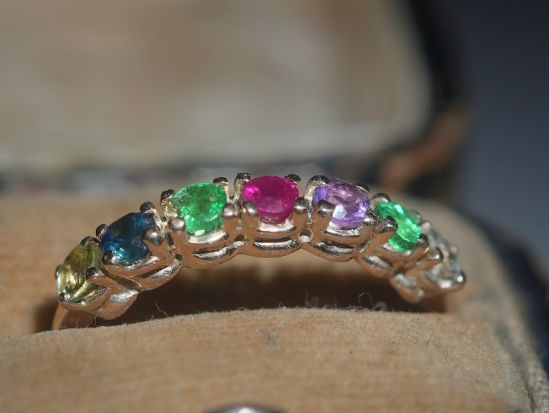 このリングには、7つの宝石がその頭文字を並べて、永遠の愛のメッセージを刻んでいます。