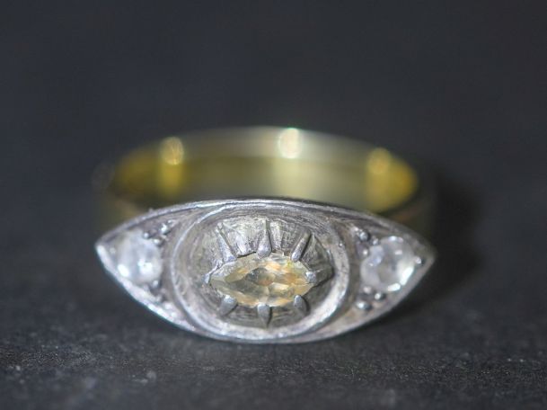 また、このリングはヴェルメイユ仕上げ。シルバーの地金に金を被せる技法で、ジョージアン期には非常に多く用いられていました。
