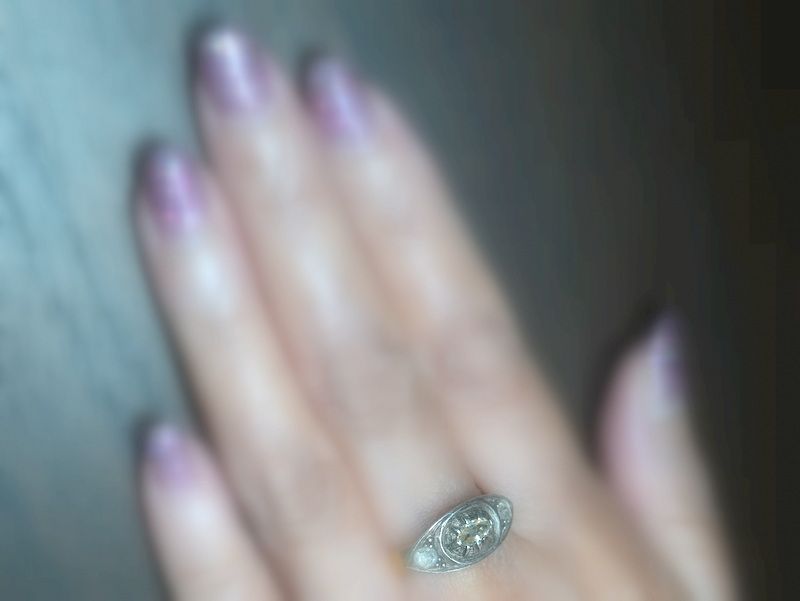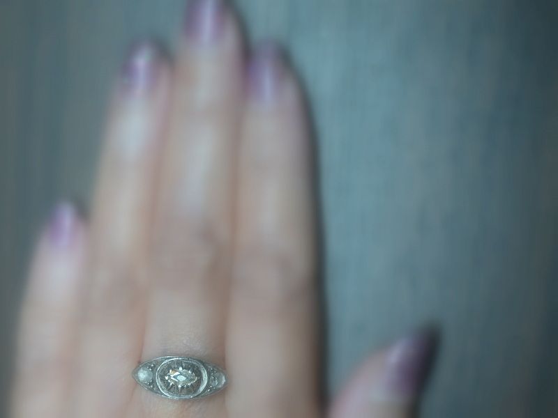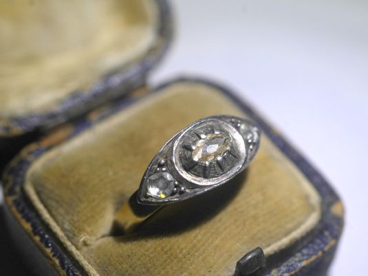 センターには、ややオーバルを思わせるフォルムのローズカットダイヤモンド。